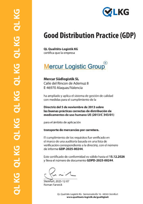 Nos complace informarles que hemos recibido oficialmente el Certificado GDP (Good Distribution Practices), un reconocimiento que avala nuestra conformidad con las Buenas Prácticas de Distribución y garantiza que nuestros procesos cumplen con los más altos estándares de calidad, seguridad y trazabilidad.